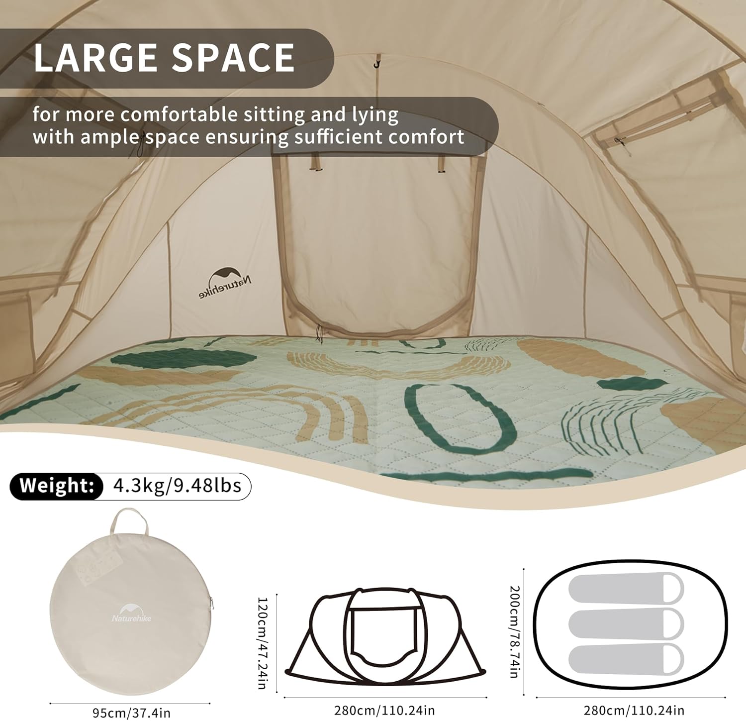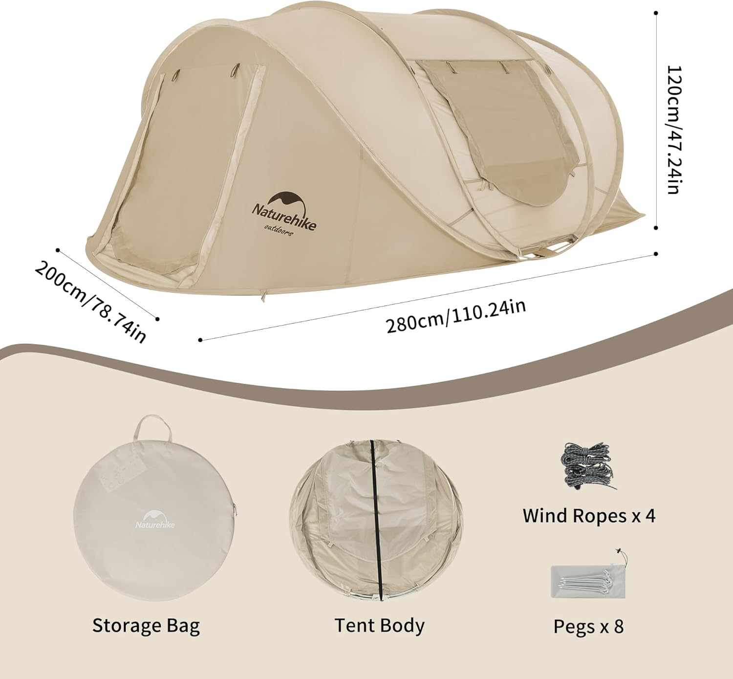 Quick Set Up Pop Up Tent: Unfolding size: 280x200x120cm/110.24x78.74x47.24in, large tent space, can accommodate 3-4 people, plenty of space to ensure enough comfort.