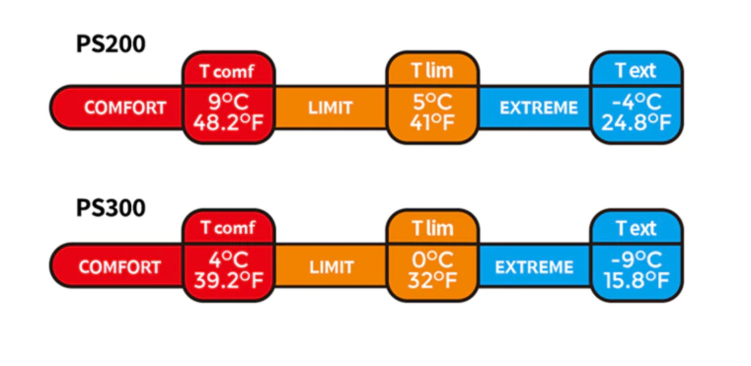 PS200: 200 g/m² filling – safe warmth from 5°C to 9°C