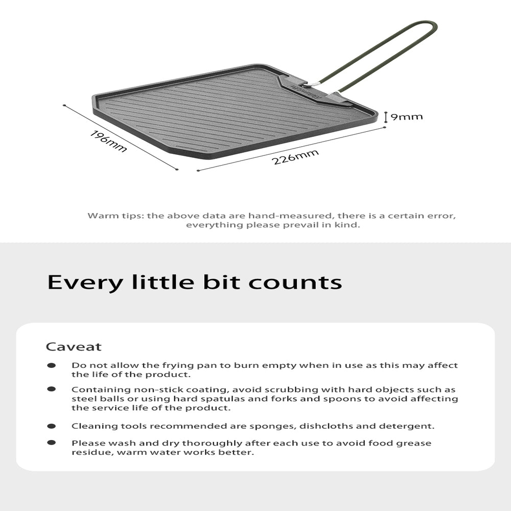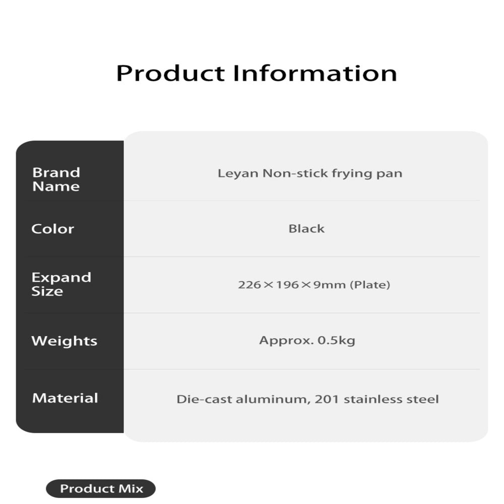 Frying area: 22.6 x 19.6 cm; Thickness is 0.9 cn