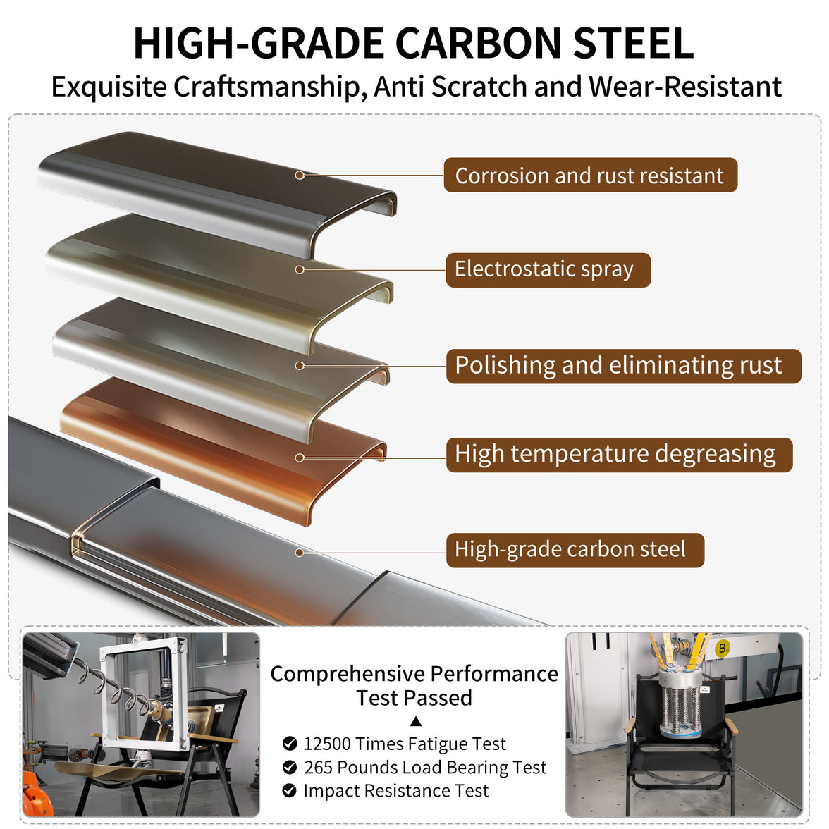 Material: Carbon steel,beech, stainless steel, 600D Oxford cloth