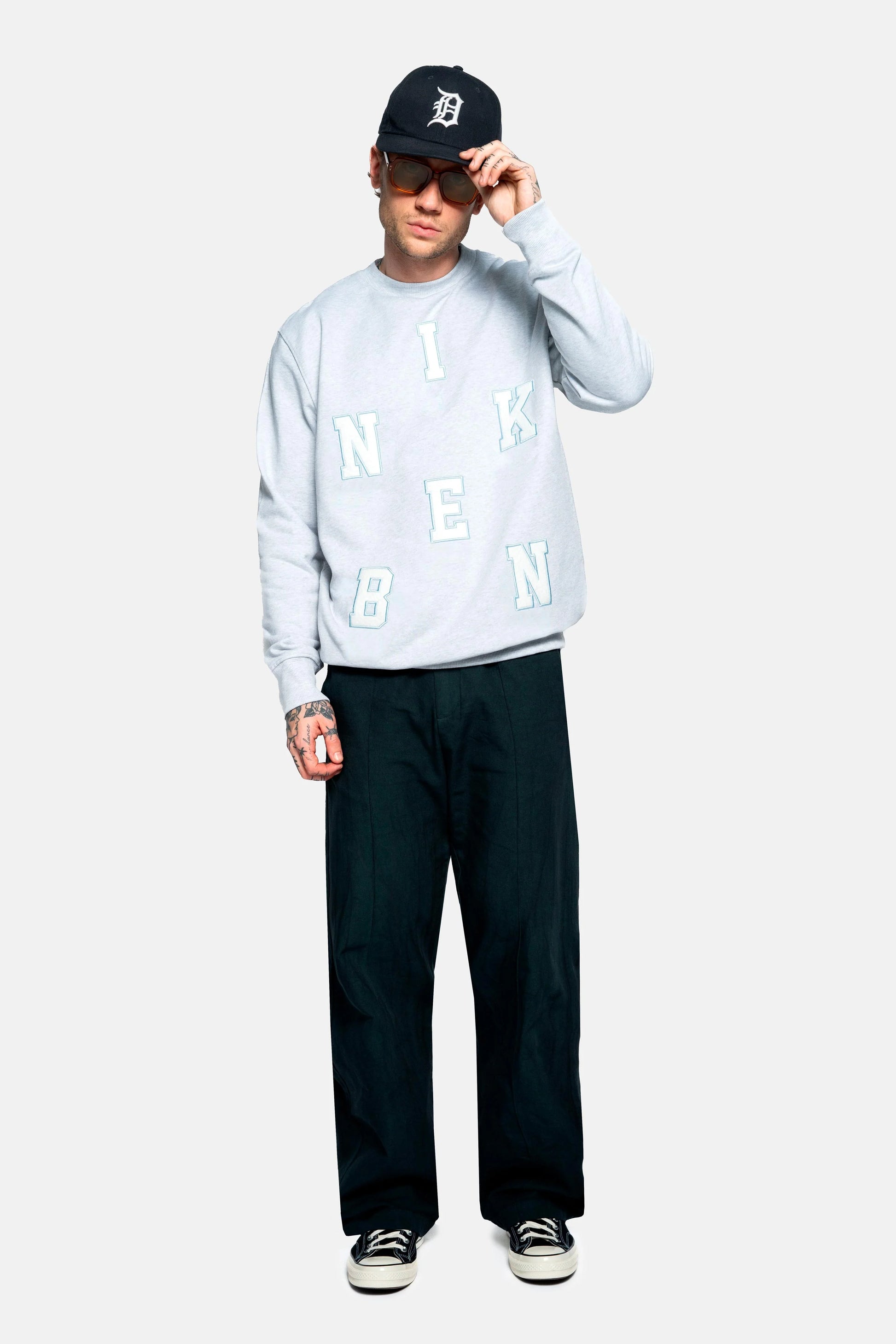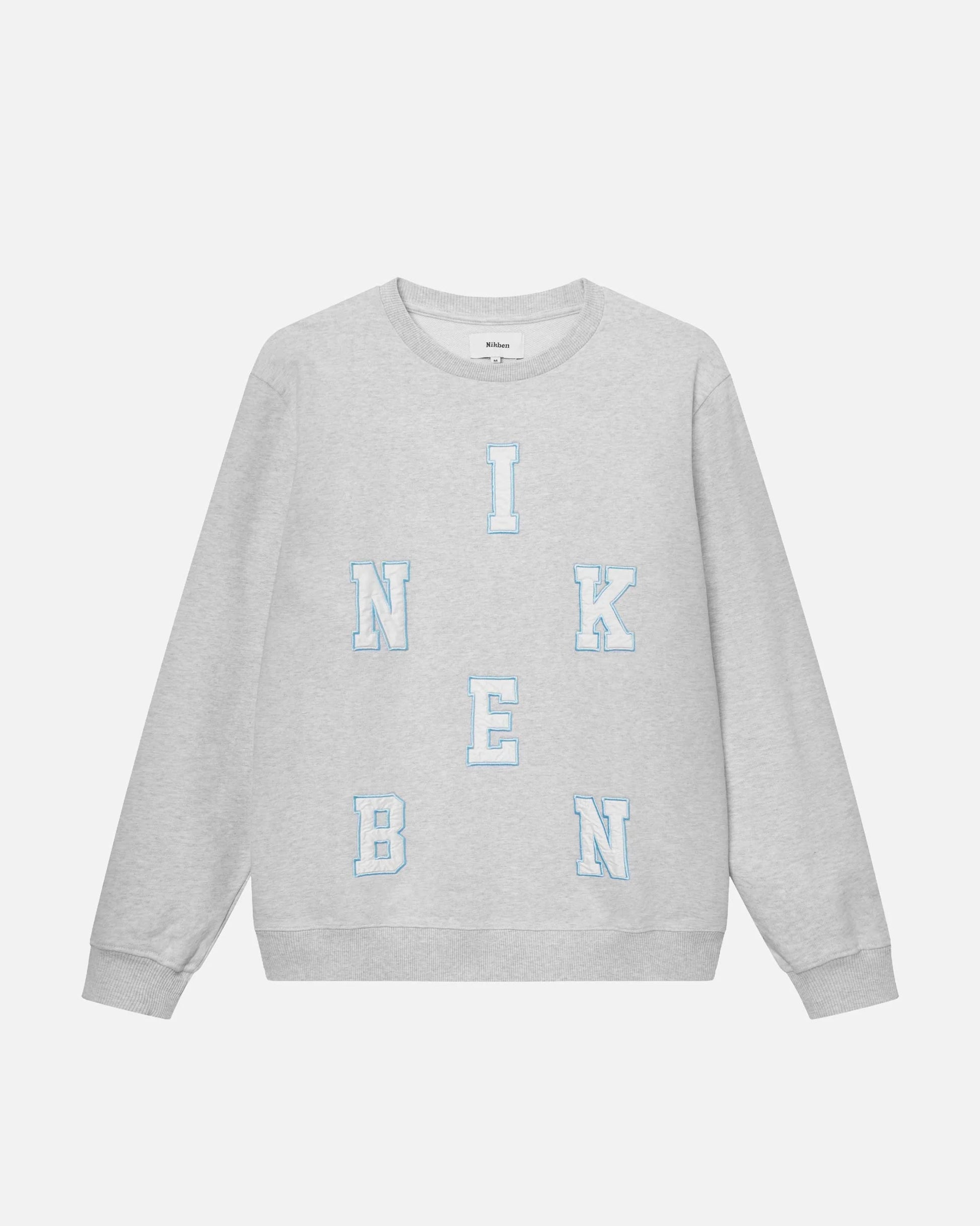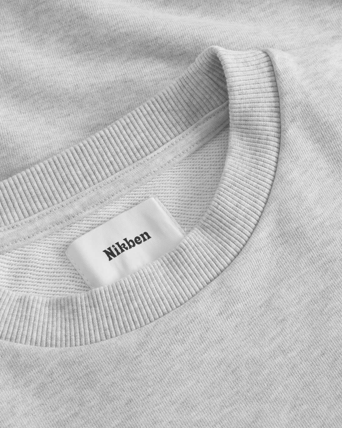 Sweatshirt in grey, featuring embroidered "NIKBEN" letters for a classic old-school look. Crafted from 100% organic cotton, this sweatshirt offers a comfortable straight fit with ribbed cuffs for added style and durability.
