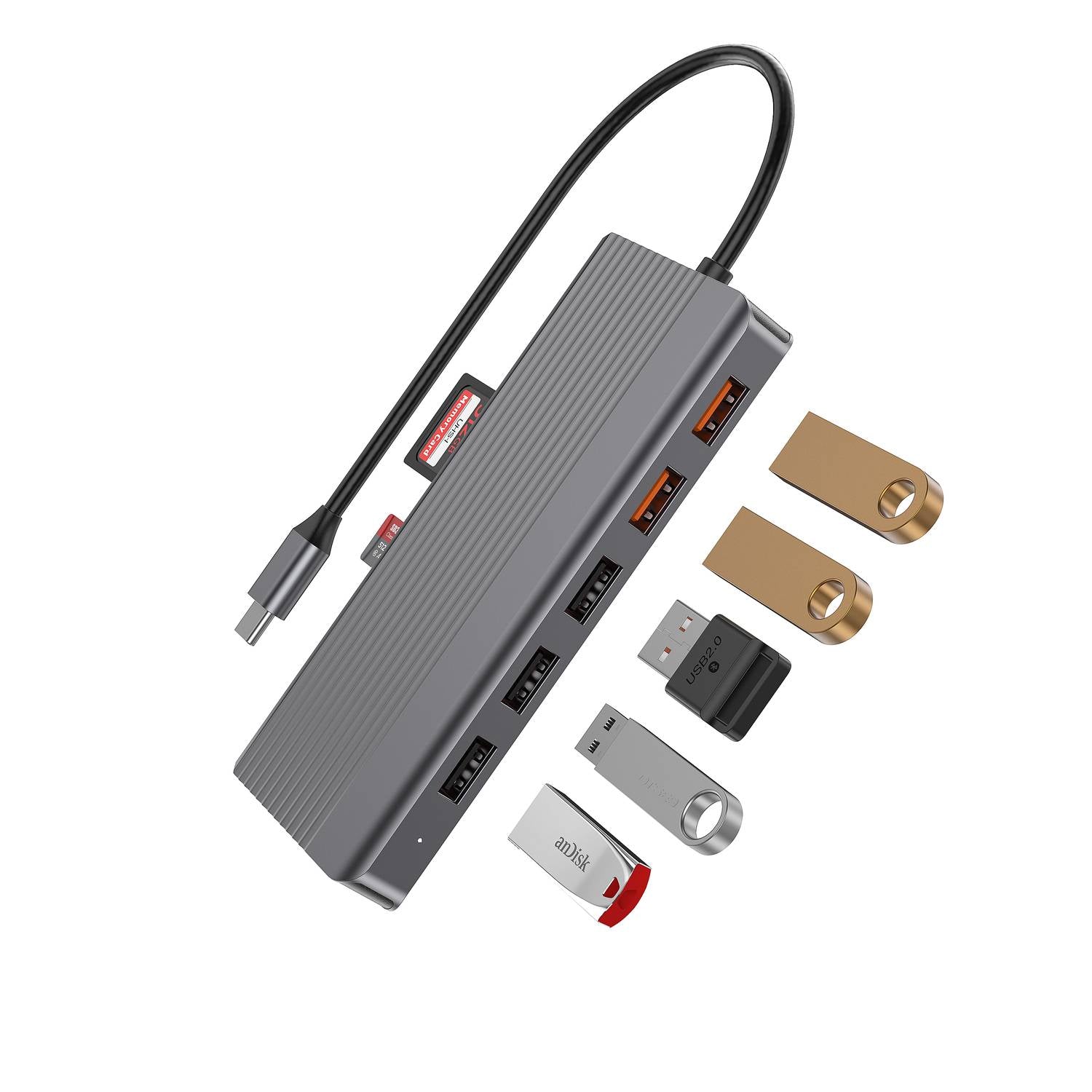 The Powerology 12IN1 Dual HDMI & DP 4K USB-C Hub Ethernet is an all-in-one device that helps you organize all your cable. It offers 12 different outputs with connecting to your device via a USB-C PD100W Input, including 3 USB-C 3.2 ports with 10Gbps high-speed data transfer, multiple HDMI Ultra-HD ports that let you connect 2 displays simultaneously, one 3.5mm AUX audio jack, and SD and Micro-SD memory cart ports. In addition to these beneficial characteristics, it also has an RJ45 Ethernet connector, which guarantees quick, reliable data transmission over Ethernet. This versatile, useful device is compatible with Android, iOS, Windows, and Mac, making it a universal option appropriate for all professionals and gamers who are constantly in need of additional ports and capacity.