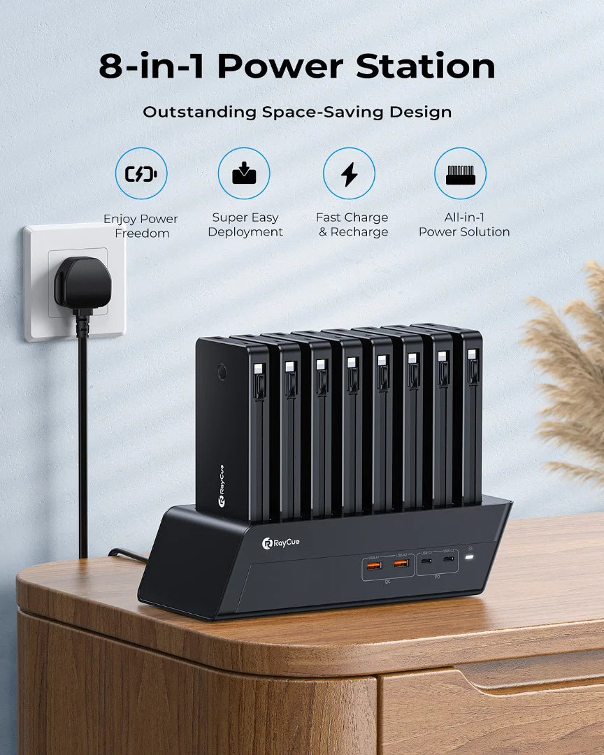 Stay powered and charged with the 8-Piece Power Bank Set—your ultimate portable charging solution for home, office, and on-the-go.