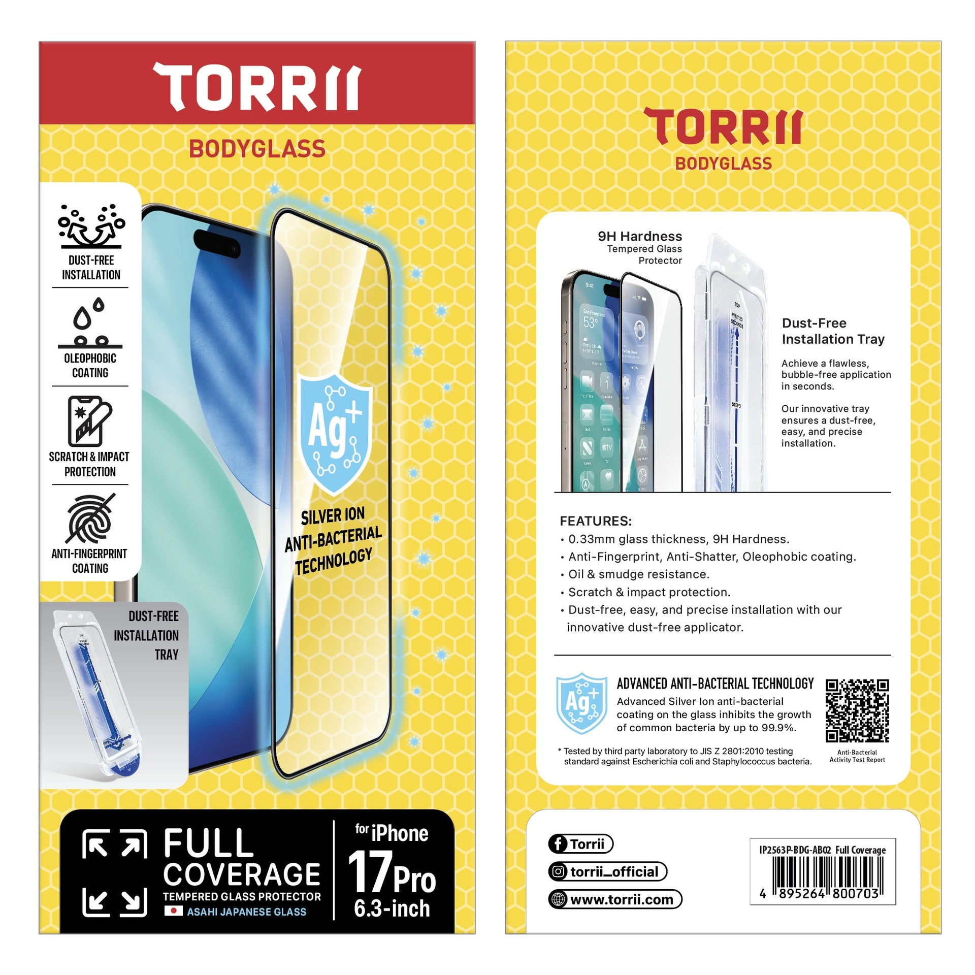 Torrii BODYGLASS for iPhone 17 Pro Anti-Bacterial – Full Coverage