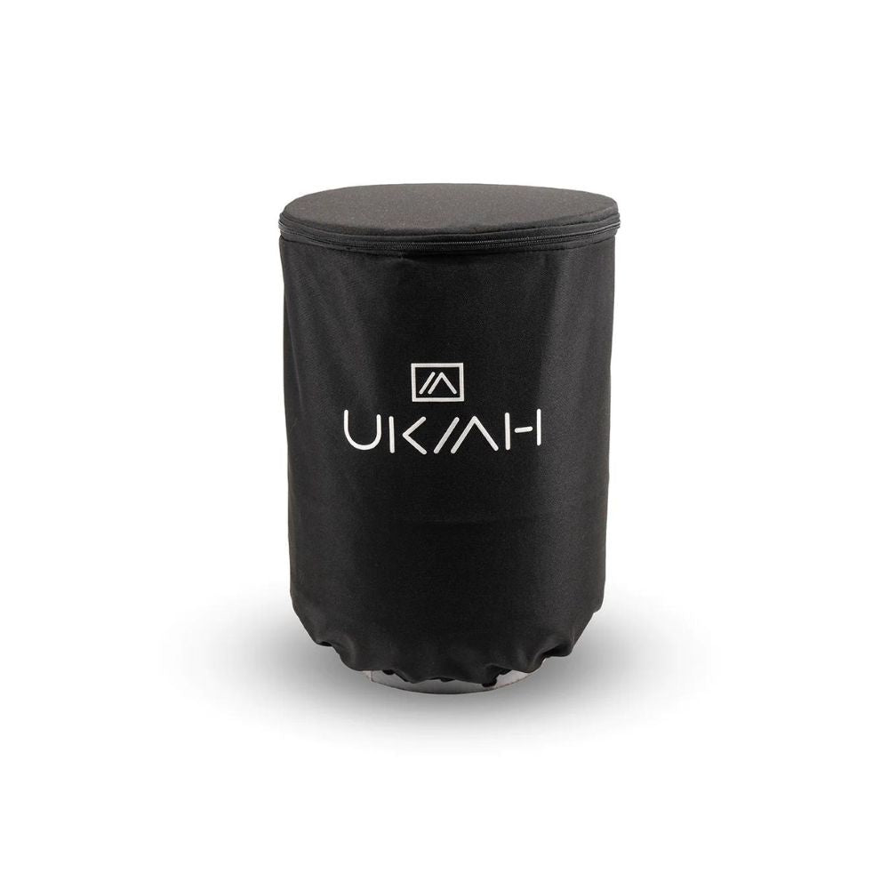 The Ukiah Co. LP Gas canister cover serves a dual purpose by concealing unsightly propane tanks while also functioning as a tabletop surface. Its design includes a durable zippered top entry for convenient access and a pull-string bottom for ease of use.